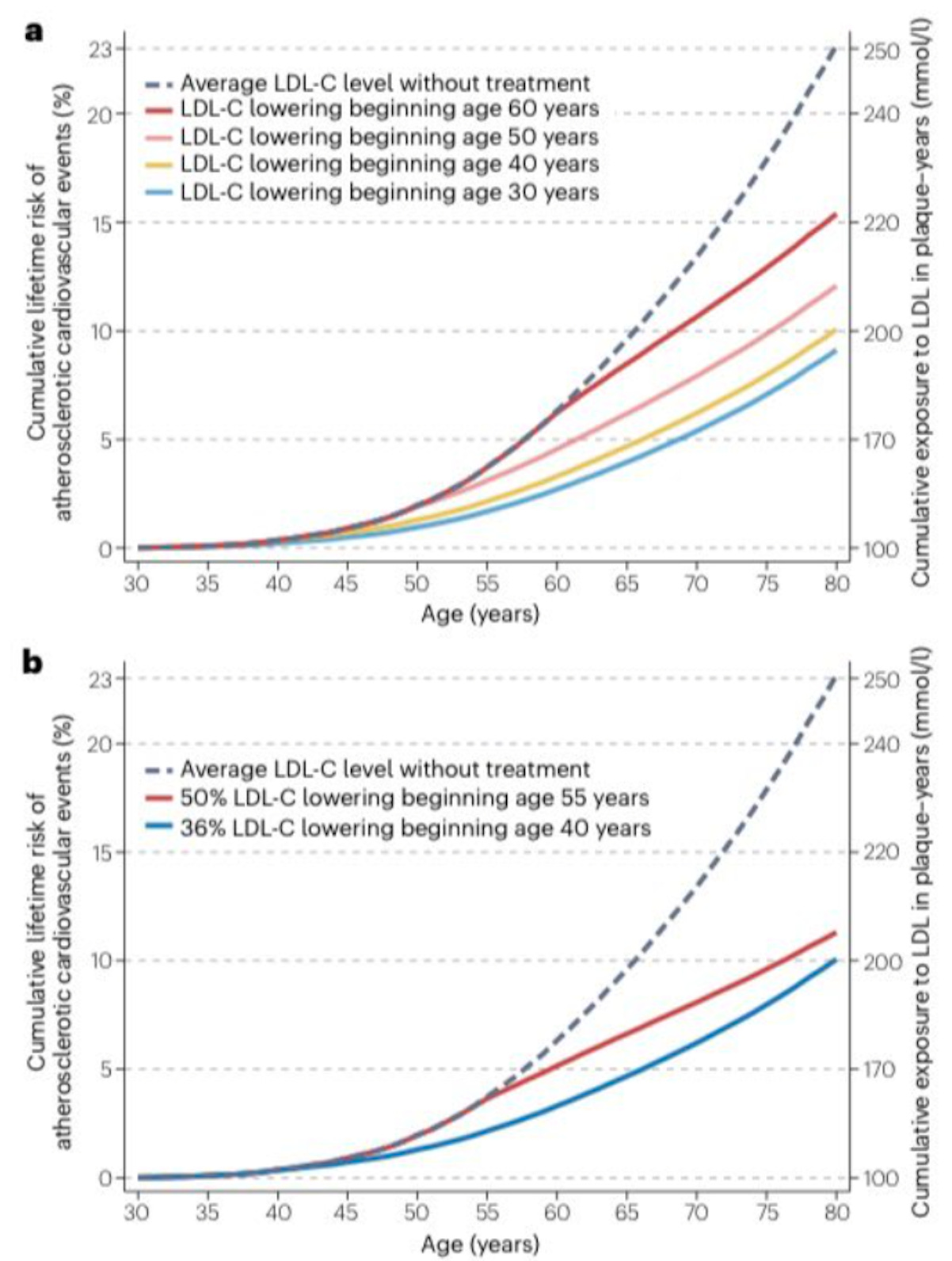 But if cumulative exposure to a single risk-factor justifies early intervention at an earlier age with statins, what does cumulative exposure to LDL, triglycerides, blood pressure, blood glucose, systemic inflammation, and visceral adiposity imply for a drug that lowers all of them simultaneously?