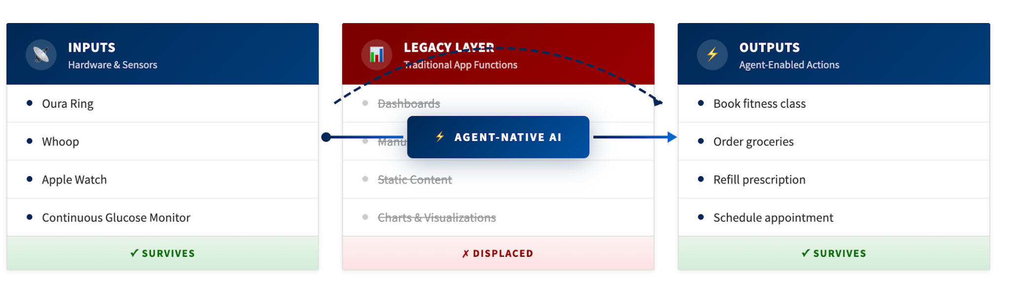 So, what could these consumer health apps do to stay alive? Small start-ups need to ask themselves, seriously, how they could stay in business if no human ever opens their app again. And those companies should probably consider building an agent-native AI health assistant that can form relationships, give contextual health advice and, most of all, be proactive rather than reactive.