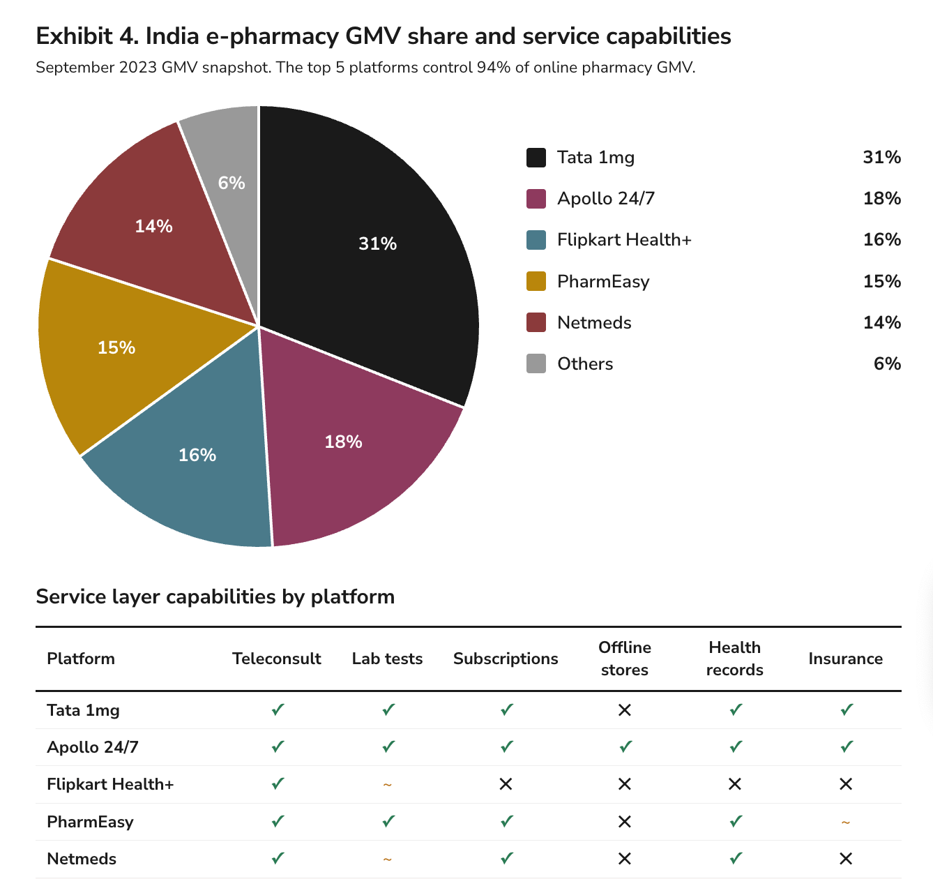 Since competition is so fierce among manufacturers, it’s likely that retail margins will be considerably better for incumbent e-pharmacy players in India, like Apollo Pharmacy, Tata 1mg, and Netmeds. These platforms already have millions of consumers buying medications through them every month, which gives them the leverage to negotiate better terms directly with manufacturers and bypass the margin-squeezed wholesaler entirely.