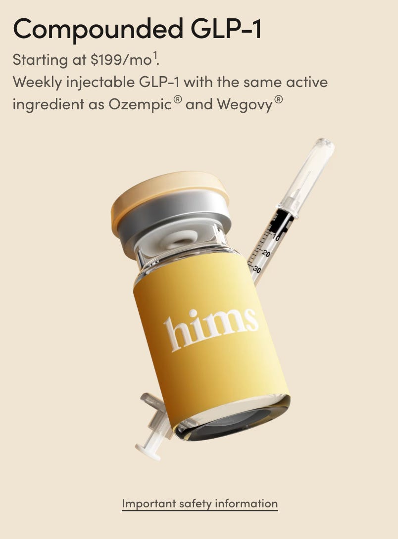 Compounding pharmacies like Hims & Hers currently offer compounded semaglutide at approximately $199/month. The $150 price gap between Novo’s branded product at $350/month and compounded alternatives means price-conscious patients have little incentive to switch.