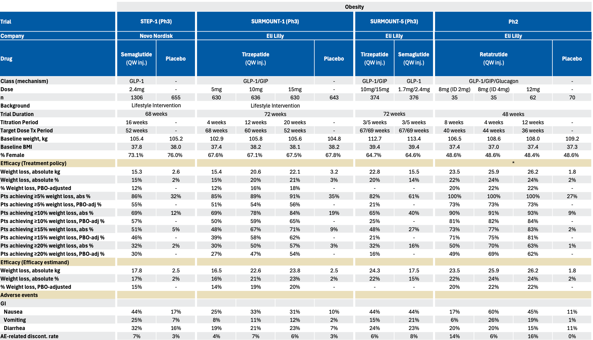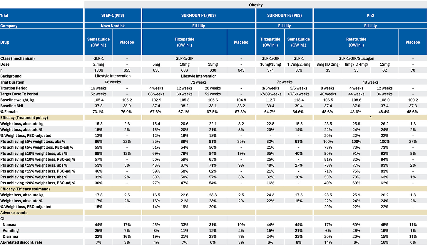 In my view, this sets up tirzepatide perfectly: it delivers better weight-loss outcomes with lower GI discontinuation rates in head-to-head trials in SURMOUNT-5.