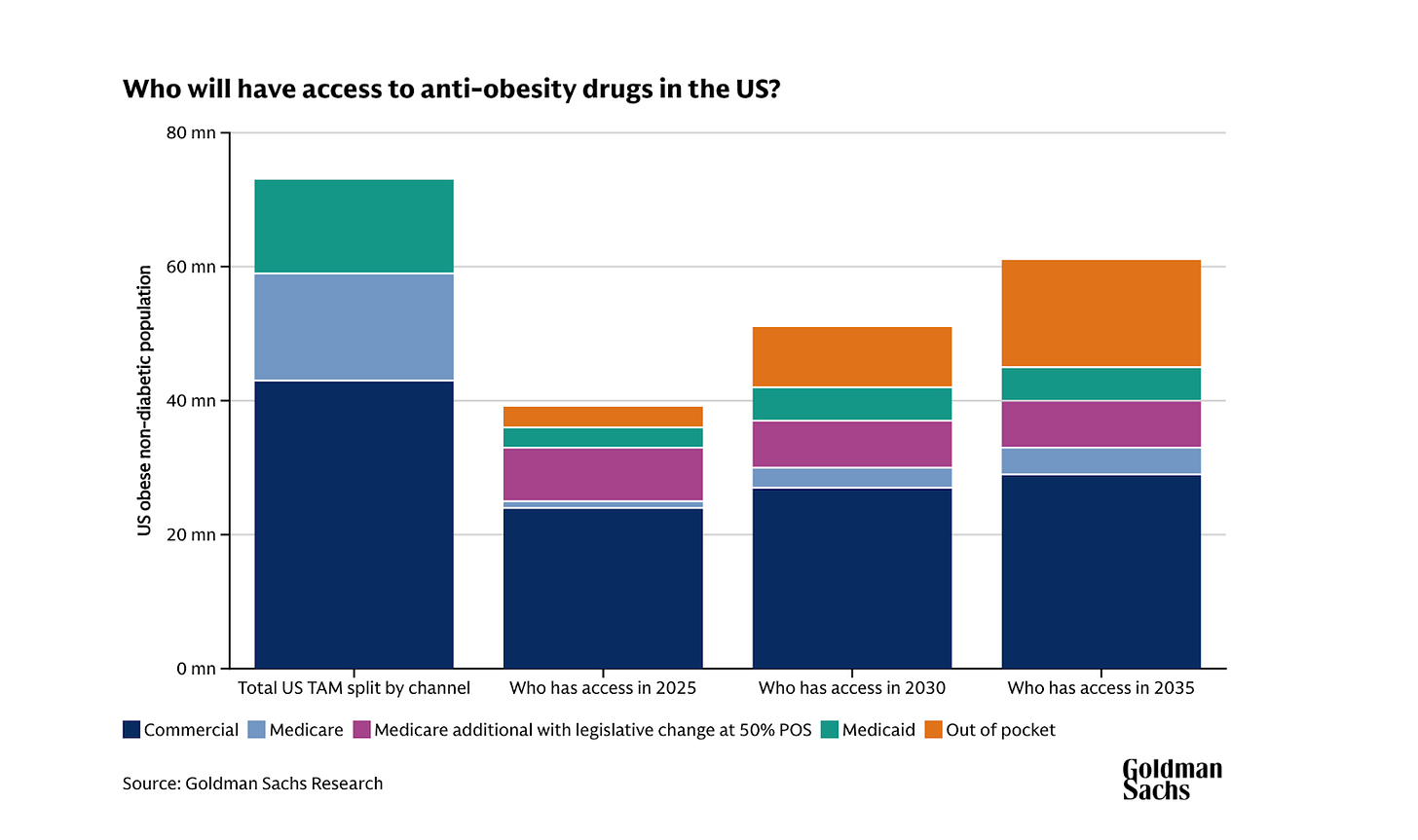 Medicare and Medicaid represent one of the largest untapped volume opportunities in the GLP-1 market. Lilly estimates roughly 40 million people will gain new access to anti-obesity medications, assuming every state opts into Medicaid coverage and every Medicare Part D plan participates.