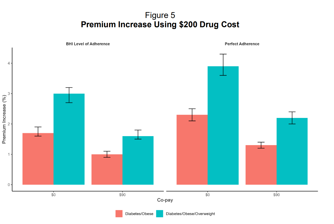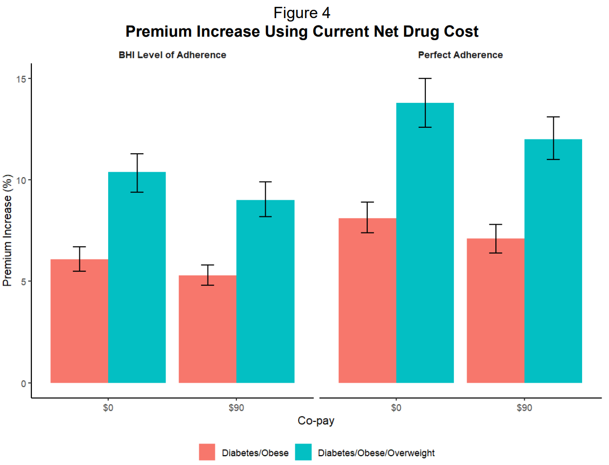 The EBRI study also found that if everyone actually stayed on the medication (what they call “perfect adherence”), premiums would jump even higher from 6.1% to 8.1% for the same coverage.